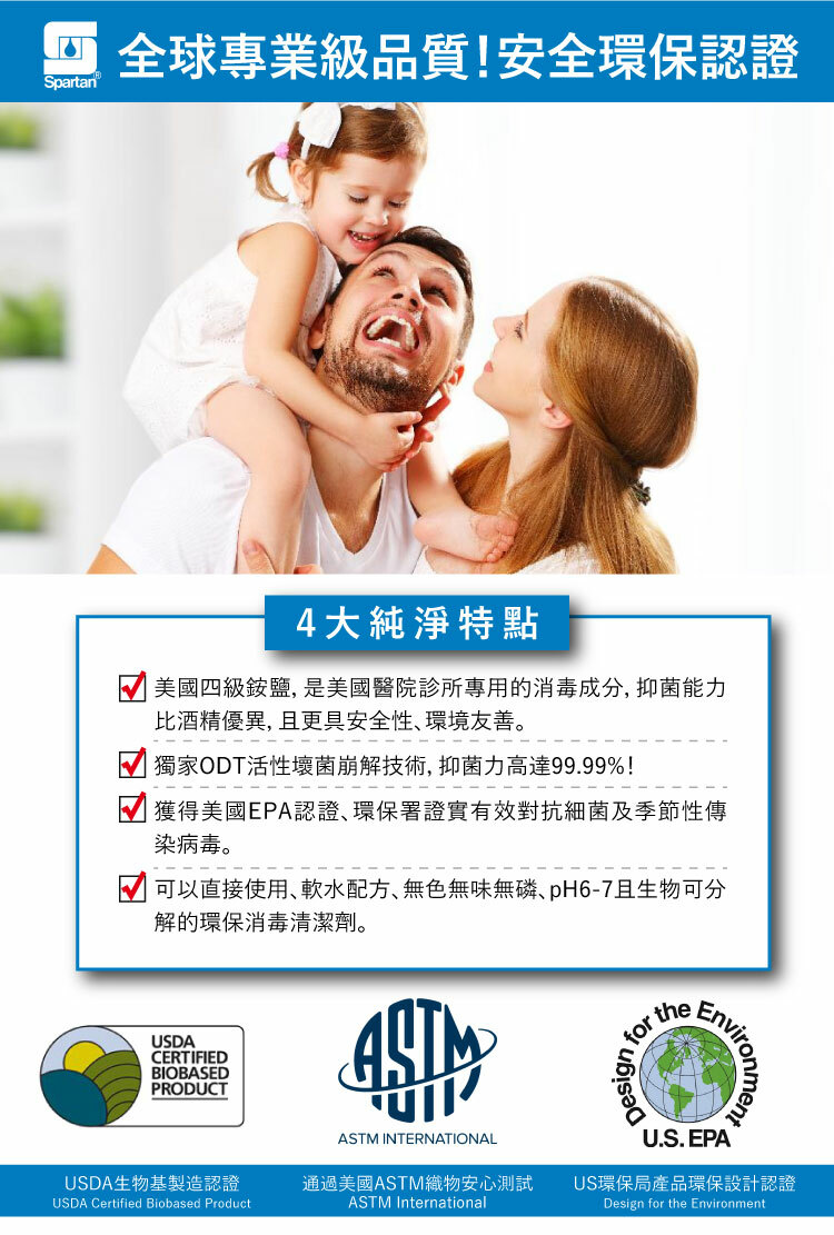 |    產品規格  |                                                      品牌:斯巴達 SPARTAN 品名:安心無味抗菌毒噴霧(環保專業版_946ml) 容量:946ml  |