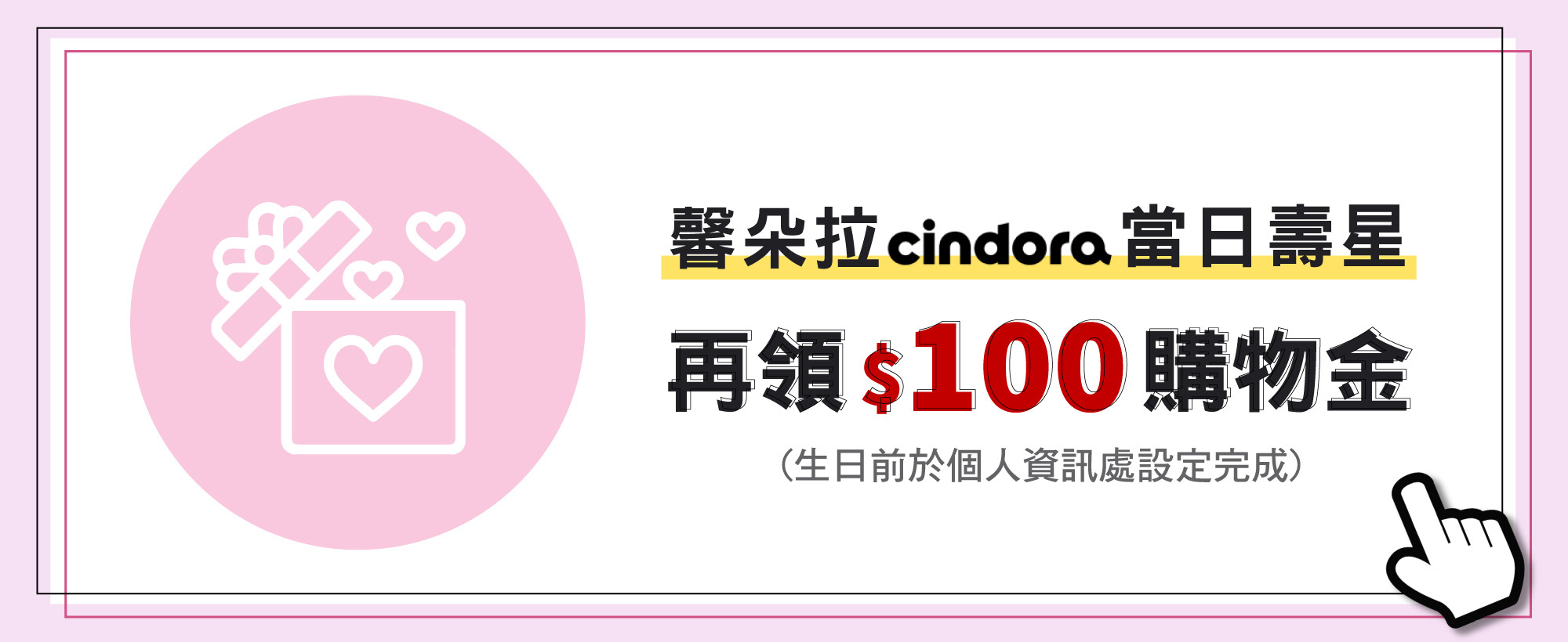 -請於馨朵拉官網會員個人資料專區,完整設定生日日期,即享會員生日禮。(請於生日前完成設定,生日當天凌晨系統將自動發放100元購物金,逾期不另行補發。)