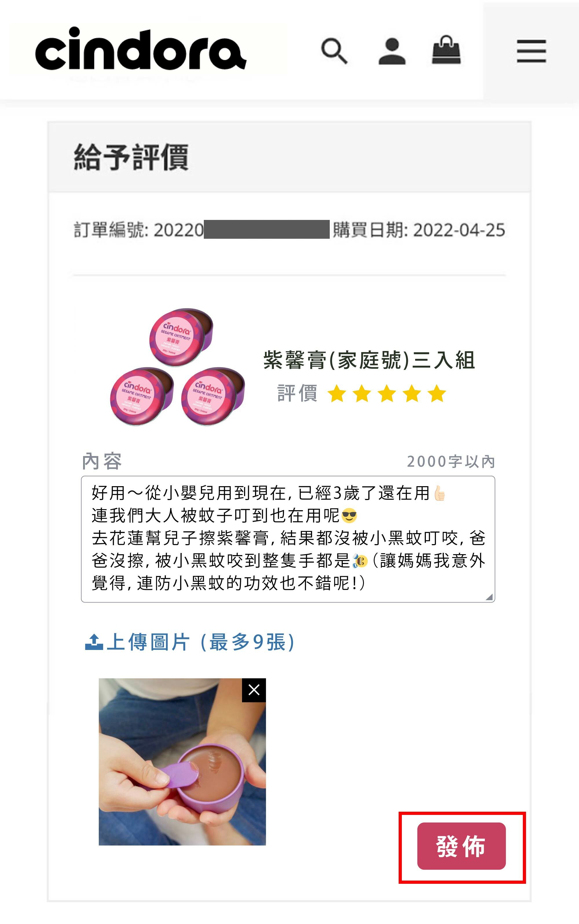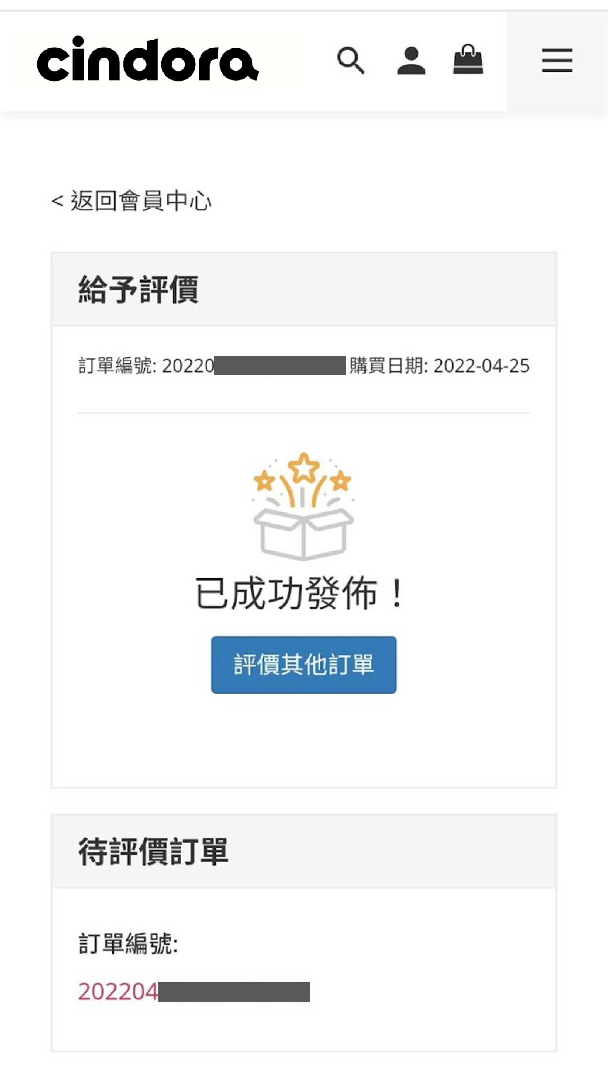 步驟4:出現「已成功發布」,即完成評價,馨店長會發送購物金給有留下評論的馨朋友唷~
