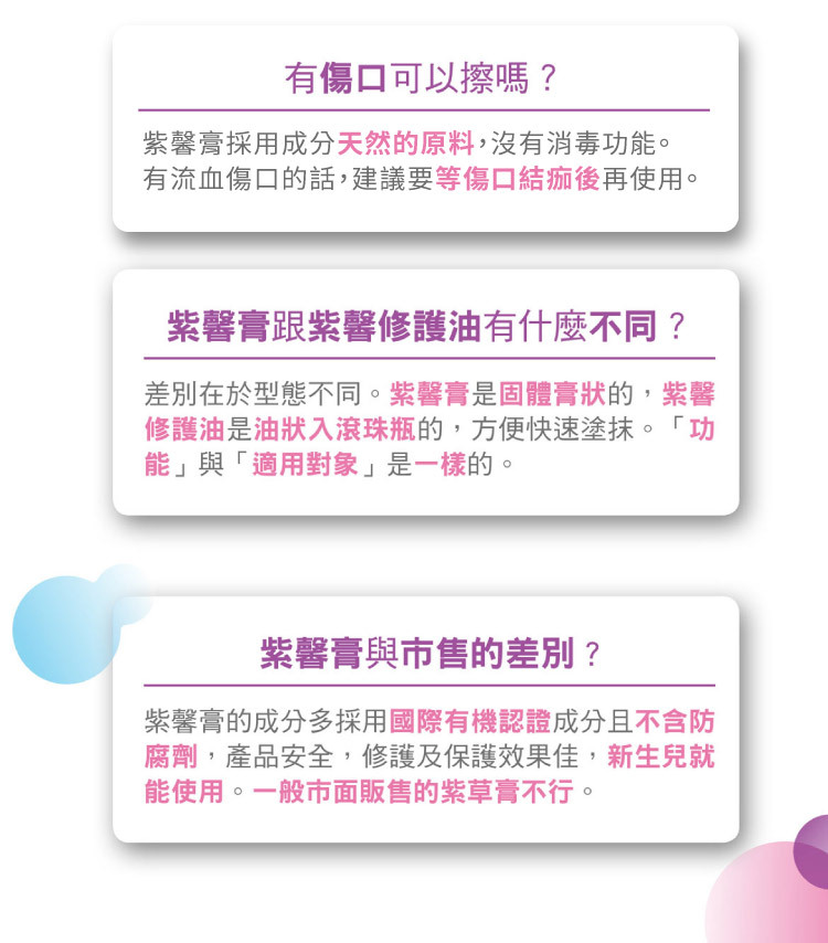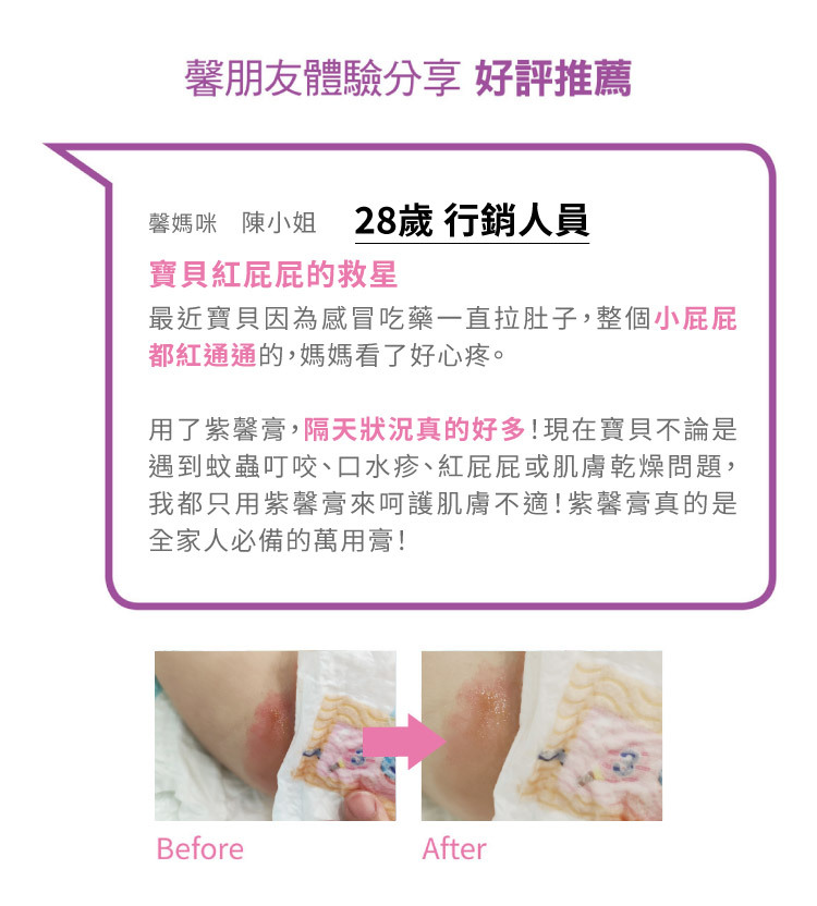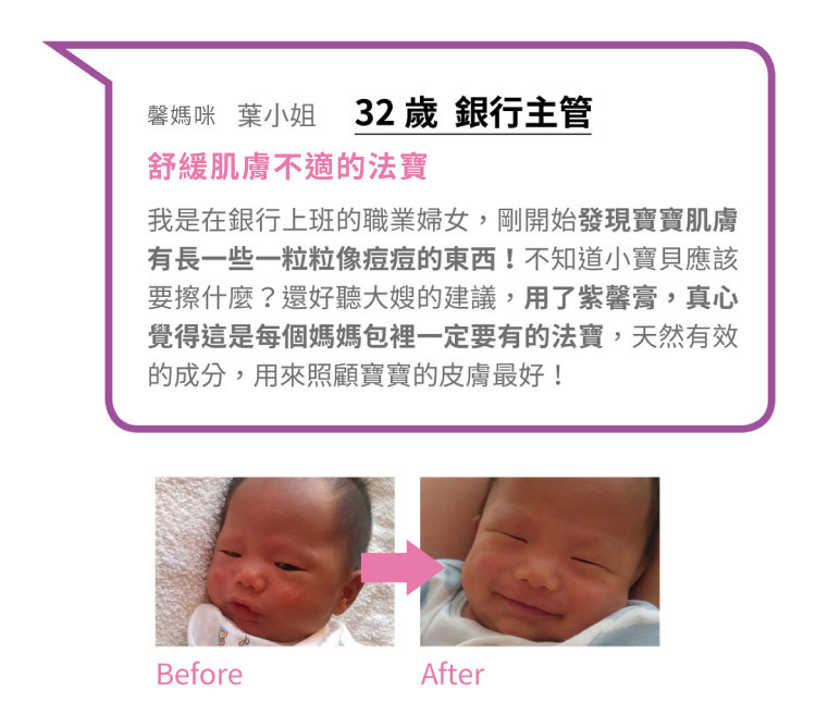 新版紫馨膏提升了黑芝麻油的比例,成分功能、觸感、修護潤澤效果再升級!國內最大月子餐品牌「紫金堂」指定聯名商品!隨時照顧全家人的肌膚,媽媽包裡不可或缺的法寶。