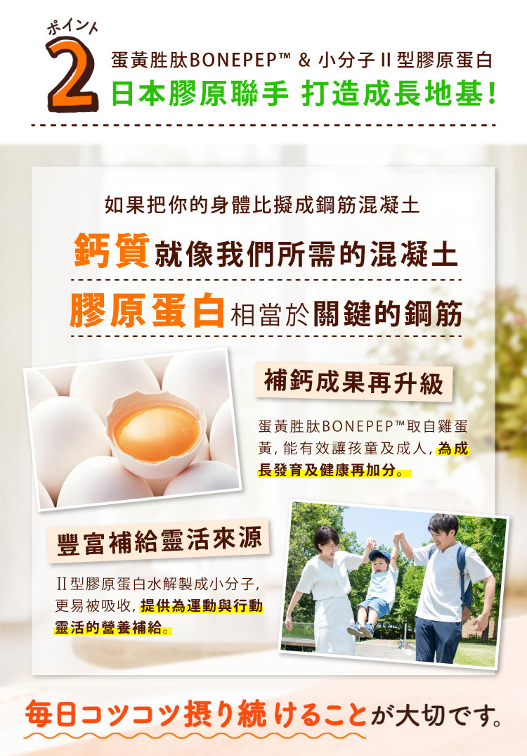 2. 日本育兒必備蛋黃胜肽BONEPEP™幫助吸收,成長更健康